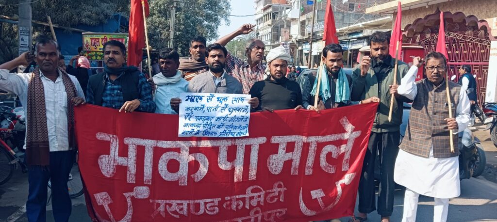 थूक को झारू से साफ करवाने, पानी से धुलवाने, पैर पकड़कर माफी मांगने के बाबजूद नाबालिग को पुलिस के हवाले करने के खिलाफ माले ने निकाला विरोध मार्च