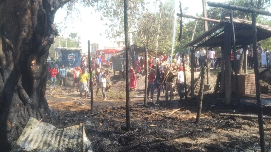 नगर परिषद बीहट वार्ड नंबर -07 अंतर्गत असुरारी स्कूल के समीप बिजली की चिंगारी से निकली आग की लपटों से अवध तिरहुत सड़क किनारे लगी चार दुकान, एक घर, दो झोपड़ी सहित लाखों की समाप्ति देखते ही देखते राख हो गया। इस आगजनी में एक रामायण महाग्रंथ भी जलकर राख हो गया। मिली जानकारी अनुसार बरौनी थाना क्षेत्र अंतर्गत असुरारी गांव निवासी दुलो सिंह के दो पुत्र क्रमशः केदार सिंह एवं बलराम सिंह,झामलाल सिंह के पुत्र लुचो सिंह, एवं सदानंद सिंह तथा संजय कुमार का दुकान, योगेन्द्र सिंह के दो पुत्र क्रमशः ललन सिंह एवं मिंटू सिंह का घर और केदार सिंह एवं बलराम सिंह का झोपड़ी, पिपल का दो पेड़, पाकड़ का एक पेड़,तार का दो पेड़, दुकान में रखे सभी सामग्री, नगदी सहित लाखों रूपए मूल्य की चीजें जलकर राख हो गया। वहीं घटना की सुचना पाते अग्नि समन की दो दमकल दल-बल सहित पहूंच कर आग पर पूर्ण रुपेण काबू पाया। ससमय अगर आग पर काबू नहीं पाया जाता तो शायद आस-पास के सभी घर, स्कूल ,फैक्ट्री, वाहन सहित कई अन्य चीजें जलकर राख हो जाती। वहीं दूसरी ओर पिपरा देवस बाबा स्थान चॉर में एक बीघा का कटा हुआ गेंहू की फ़सल,भूसा में भी आगजनी हो गया।‌ आगजनी में गोविंद यादव के पुत्र दशरथ यादव, लाखो यादव के पुत्र विलास यादव का गेंहू, रामसेवक यादव के पुत्र बबलू यादव तथा सीयाराम यादव के पुत्र रंजीत यादव का गेंहू का भूसा भी जलकर राख हो गया। वहीं घटना की सुचना पाकर पहुंची दमकल कर्मियों ने आस-पास में फैले आग पर पूर्ण रूप से काबू पा लिया। वहीं घटना की सुचना पाते ही बरौनी थाना के पुलिस अवर निरीक्षक आलोक कुमार, सहायक पुलिस अवर निरीक्षक सुभाष कुमार सहित अन्य भी घटनास्थल पर पहुंच आगजनी का जायजा लिया।