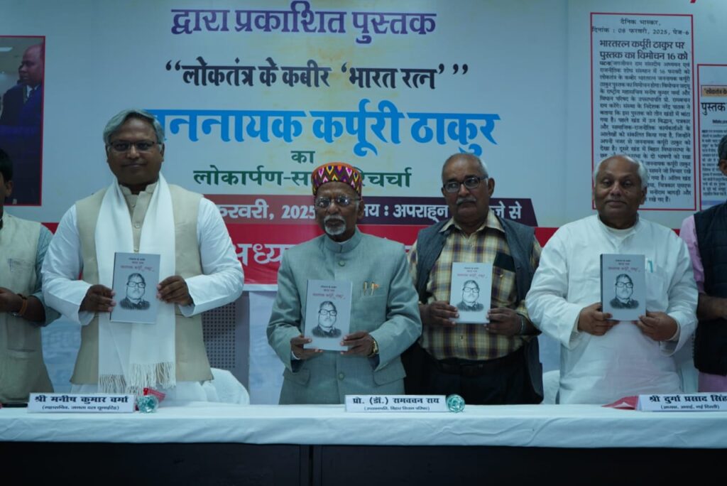 पटना। पिछले साल जन्म शती वर्ष पर भारत रत्न से अलंकृत किए गए कर्पूरी ठाकुर के जीवन और उनके कार्यों का आकलन करती पुस्तक इन दिनों चर्चा में है। गत 16 फरवरी को पटना स्थित जगजीवन राम संसदीय अध्ययन एवं राजनीतिक शोध संस्थान, पटना की ओर से ‘लोकतंत्र के कबीर भारत रत्न जननायक कर्पूरी ठाकुर’ पुस्तक के लोकार्पण किया गया। लोकार्पण के दौरान उक्त पुस्तक पर गहन चर्चा भी हुई। परिचर्चा के प्रारंभ में जगजीवन राम संसदीय अध्ययन एवं राजनीतिक शोध संस्थान, पटना के निदेशक नरेंद्र पाठक ने कहा कि कर्पूरी ठाकुर पर इस पुस्तक की में कई शोधार्थियों, बुद्धिजीवियों, समाजवादियों और लेखकों के विचारों को समाहित किया गया है। इस पुस्तक में शामिल किए गए आलेख कर्पूरी जी की कृतियों और उनके मूल्यों को स्थापित करने में मिल का पत्थर साबित होगी। 360 पृष्ठों की यह पुस्तक चार खंडों में है और आखिरी अध्याय बिहार के मुख्य मंत्री नीतीश कुमार लिखित है। पुस्तक के संपादक का कहना है कि नीतीश कुमार कर्पूरी ठाकुर की वैचारिकी के जीवंत बायोपिक है। इस खंड में डॉ लोहिया लिखित जब देश में पागल पैदा होते हैं,तभी क्रांति होती है लेख बहुत महत्वपूर्ण है। इसी के साथ पुस्तक में मनीराम बागड़ी लिखित कर्पूरी, तुम देश में कब निकलोगे जैसे दुर्लभ लेख भी हैं। पहले खंड में 37 आलेख हैं जिसकी शुरुआत प्रो राम वचन राय और विजय कुमार चौधरी के आलेखों से हुई है। इनके अलावा मनीष वर्मा,ऋतुराज सिन्हा, डा कुमार परवेज,डॉ प्रमोद शर्मा,रामकुमार निराला,प्रो वीरेंद्र झा, सुरेंद्र किशोर, आलोक मेहता, प्रो आनंद कुमार, हेमंत, ज्योतिष जोशी,अशोक मोती और प्रसून लतांत आदि के भी आलेख हैं।