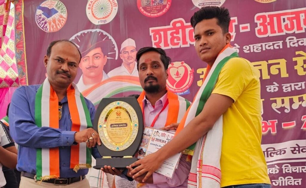 समस्तीपुर : शहीद दिवस पर आमजन सेवा समिति द्वारा आयोजित रक्तदाता महाकुंभ सम्मेलन सह सम्मान समारोह में रोटी बैंक समस्तीपुर की टीम को मानव सेवा के क्षेत्र में उत्कृष्ट योगदान के लिए अंतरराष्ट्रीय वीरता गौरव सम्मान से सम्मानित किया गया।