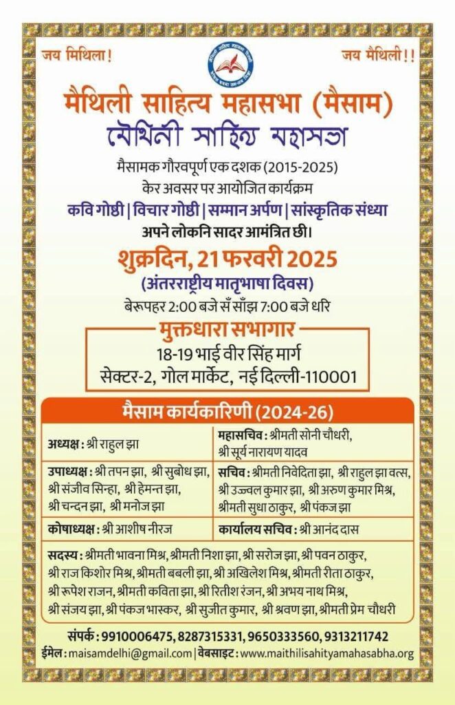 मैथिली साहित्य महासभा द्वारा 21 फरवरी 25 को वार्षिकोत्सव का आयोजन