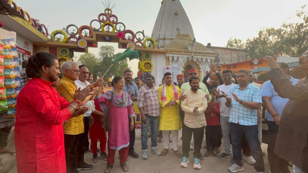 गुरुवार को बीहट का स्वरूप बदला बदला सा था हर सड़क पर लोक कलाकारों का जमघट लगा था। अलग अलग परिधानों में सजे कलाकार और उनके वाद्य यत्रं बीहट वासी सहित हर किसी के मन को भा रहे थे। मौका था लोक रंग यात्रा का। लोक रंग यात्रा के पूर्व यात्रा का शुभारंभ व हरी झंडी पद्मश्री सुधा वर्गीज, वरिष्ठ रंगकर्मी संजय उपाध्याय, पूर्व विधान पार्षद भूमिपाल राय, निलेश सिंह डिया, उपमुख्य पार्षद ऋषिकेश कुमार, श्यामनंदन सिंह पन्नालाल, प्रधानाध्यापक रंजन कुमार, संस्था के अध्यक्ष अमर ज्योति, सचिव गणेश गौरव, संयोजक डॉ कुन्दन कुमार, राजीव कुमार, चन्द्रप्रकाश सिंह उर्फ लाल बाबू, दिनेश दिवाना, मनीष कुमार, अंकित कुमार, रूपेश कुमार, संतोष कुमार, नरेश कुमार सहित अन्य गणमान्य लोगों ने हरी झंडी दिखाकर लोक रंग यात्रा को क्षेत्र भ्रमण हेतु रवाना किया। आकाश गंगा चौपाल एसोसिएशन बरौनी के द्वारा मध्य विधालय बीहट परिसर में आयोजित राष्ट्रीय नाट्य महोत्सव के शुभारंभ मौके पर लोक कलाकारों की भव्य यात्रा काफी मनमोहक और मनभावन रूप ली हुई थी। अलग अलग रंगों परिधानों और वाद्य यंत्रों के साथ पारंपरिक रूप से नाचते झूमते कलाकार बीहट की सड़कों पर धीरे धीरे आगे बढ रहे थे। पूरी झांकी में लोक कलाकारों की प्रस्तुति देखने लायक थी। झांकी की कतार में सबसे आगे शंख वादन कर कार्यक्रम का शुभारंभ करते दिख रहे थे कलाकार।उनके पीछे देवहर की टोली मानर वाद्य यंत्र के साथ नाचते झूमते मगन दिख रहें थे। इनके पीछे डंका और नगारा के साथ लोक कलाकार अपने वादन से लोगों को थिरकने के लिए मजबूर कर रहे थे।इसके अलावे पंजाबी ढोल लोक आकर्षण का केंद्र बना हुआ था। इसके साथ ही लोक नाच में कठघोरवा, मोर मंजूर, डोमकछ के कलाकार भी लोकरंग यात्रा की शोभा बढ़ा रहे थे।इनके साथ साइकिल पे संडे टीम के सदस्य और अलग अलग स्कूलों से आये प्रतिभाशाली बच्चे रंग बिरंगे झंडो के साथ मार्च पास्ट कर रहे थे। लोक रंग यात्रा मध्य विद्यालय बीहट से निकलकर बीहट बाजार होते हुए सिद्ध पीठ बड़की दुर्गा मंदिर,
