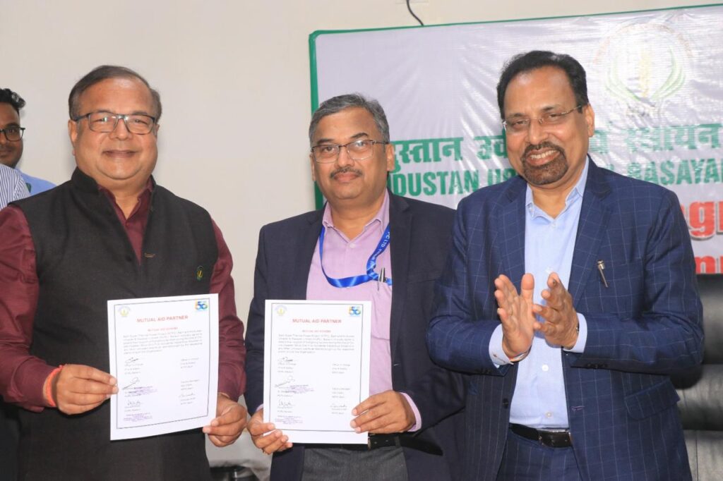 हिंदुस्तान उर्वरक एवं रसायन लिमिटेड बरौनी और एनटीपीसी बाढ़ के बीच सोमवार को सुरक्षा, आपातकालीन तैयारी और सहयोगात्मक प्रतिक्रिया तंत्र को मजबूत करने के लिए एक पारस्परिक सहायता समझौते पर हस्ताक्षर किया गया। इस पारस्परिक समझौते के अंतर्गत दोनों इकाइयों के बीच आपात स्थिति के दौरान जनशक्ति, उपकरण और विशेषज्ञता का कुशल आवंटन के लिए संसाधन साझा करना, औद्योगिक घटनाओं पर प्रतिक्रिया देने की हमारी सामूहिक क्षमता को मजबूत करना तथा कर्मचारियों, संपत्तियों और आसपास के क्षेत्रों की सुरक्षा के लिए एक संयुक्त दृष्टिकोण को सुनिश्चित करना है। कार्यक्रम के दौरान हिंदुस्तान उर्वरक एवं रसायन लिमिटेड के प्रबंध निदेशक श्री एस.पी. मोहंती, परियोजना प्रमुख/ दखलकार संजय कुमार गुप्ता, कारखाना प्रबंधक मनीष कुमार और एनटीपीसी बाढ़ के परियोजना प्रमुख जी श्रीनिवास राव, महाप्रबंधक परियोजना एस बी सिंह एवं एजीएम सुरक्षा रादीस एस उपस्थित रहे।