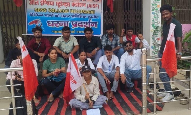 एसबीएसएस कॉलेज में हो रहे भ्रष्टाचार के खिलाफ एआईएसएफ ने किया धरना प्रदर्शन