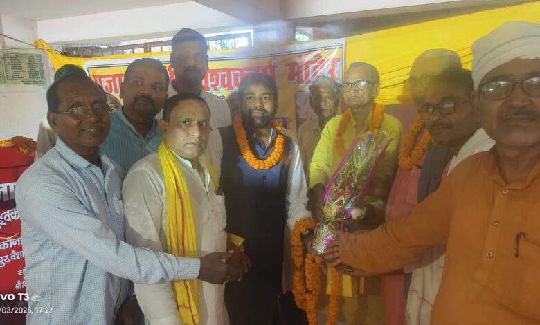 स्वागत में मंदिर कमिटी के सदस्य रामसोभित पंडित, मनोज पंडित, उदय कुमार, अयोध्या पंडित, राजू पंडित, बबलू पंडित सहित अन्य गणमान्य जन उपस्थित रहे।