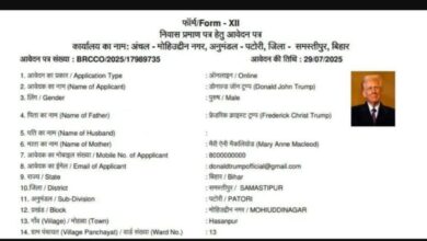 समस्तीपुर में अमेरिकी राष्ट्रपति डोनाल्ड ट्रम्प का बना निवास प्रमाण-पत्र, जांच कर कारवाई हो- सुरेंद्र चुनाव आयोग जिस निवास प्रमाण-पत्र…