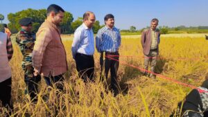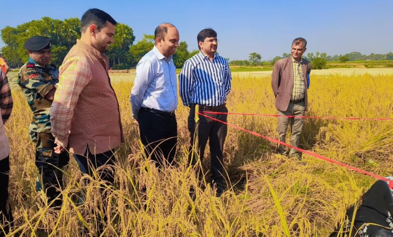डीएम ने अगहनी धान फसल कटनी कराकर किया उत्पादन का आकलन