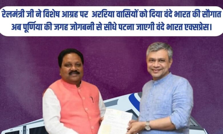 सीमांचल की राजनीति और विकास गाथा में अब नया अध्याय जुड़ने जा रहा है। अररिया के सांसद प्रदीप कुमार सिंह की जोरदार पैरवी का असर दिखा – अब पूर्णिया से पटना जाने वाली वंदे भारत ट्रेन जोगबनी से पटना तक चलेगी।