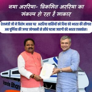 “सांसद प्रदीप कुमार सिंह की जीत – जोगबनी से पटना दौड़ेगी वंदे भारत, सीमांचल को मिलेगा एयरपोर्ट”