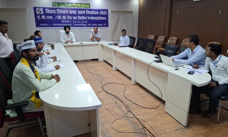 बिहार विधानसभा आम निर्वाचन, 2025 के क्रम में जिले के 131-कल्याणपुर (अ०जा०), 132-वारिसनगर, 133-समस्तीपुर, 134-उजियारपुर, 135-मोरवा, 136-सरायरंजन, 137-मोहिउद्दीननगर, 138-विभूतिपुर, 139-रोसड़ा (अ०जा०) एवं 140-हसनपुर के लिए संबंधित निर्वाची पदाधिकारी द्वारा ‘द्वितीय रैंडमाइजेशन’ दिनांक 24.10.2025 को समाहरणालय, सभाकक्ष समस्तीपुर में सम्पन्न हुआ। इस दौरान निर्वाचन लड़ने वाले अभ्यर्थियों / उनके प्रतिनिधियों तथा प्रेक्षक उपस्थित रहे।