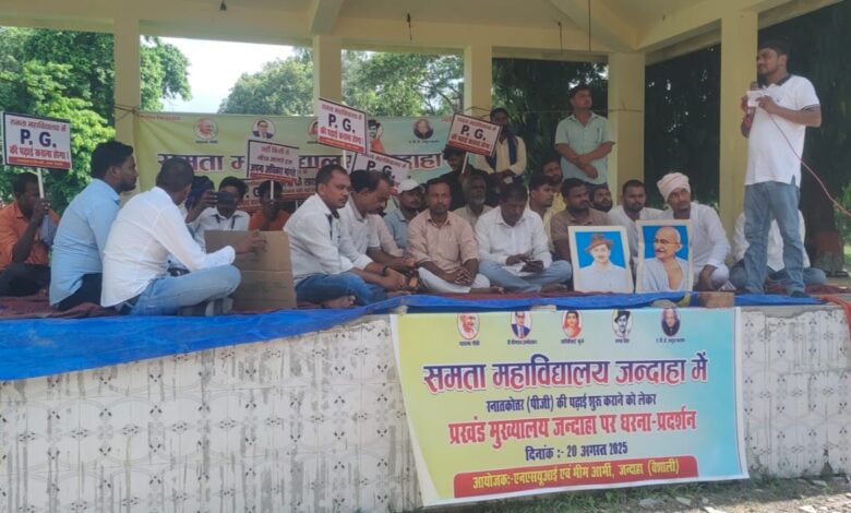 समता महाविद्यालय में पीजी की पढ़ाई को लेकर एनएसयूआई एवं भीम आर्मी ने दिया धरना, जंदाहा बीडीओ ने मांगों को उचित ठहराते हुए दिया आश्वासन, पीजी के पढ़ाई के लिए अभी तक आठ हजार हस्ताक्षर हुए,