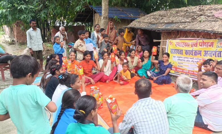 सरायरंजन।जवाहर ज्योति बाल विकास केन्द्र, अख्तियारपुर द्वारा अख्तियारपुर, किसनपुर यूसुफ, उदयपुर, नरघोघी, मनीका बूजूर्ग, गांवों में डाबर इंडिया कंपनी और जवाहर ज्योति बाल विकास केन्द्र के संयुक्त तत्वावधान में रियल जूस वितरण किया गया। मौके पर वार्ड सदस्य सह सामाजिक कार्यकर्ता गौतम कुमार पासवान, मंतोष रजक, आंगनबाड़ी कार्यकर्ता मीना कुमारी, पैरवी नई दिल्ली के बीड़ी कामगार संगठक विभा कुमारी, बाल अधिकार परियोजना के सिनियर रिसर्च कंसल्टेंट बलराम चौरसिया, दिनेश प्रसाद चौरसिया, वीणा कुमारी, ललिता कुमारी, सामुदायिक शिक्षक बबिता कुमारी, शंकर पासवान, बालक पासवान, वार्ड सदस्य उमेश राय, समेत अन्य प्रमुख लोग मौजूद रहे। जवाहर ज्योति बाल विकास केन्द्र के लिए सचिव सुरेंद्र कुमार ने बताया कि समाज के कमजोर परिवार और उनके बच्चों को पौष्टिक आहार के रूप में रियल जूस दिया गया है और डाबर इंडिया कंपनी का सहयोग से आगे भी दिया जाएगा। उन्होंने कहा कि समाज का हर एक बच्चे को शिक्षा से जोड़ने का अभियान चलाया जा रहा है और बच्चे को बाल विवाह और बाल श्रम से बचाकर नियमित शिक्षा से जोड़ने पर बल दिया जा रहा है। आगे उन्होंने कहा कि जवाहर ज्योति बाल विकास केन्द्र बाल विवाह और बाल श्रम मुक्त गांव बनाने में परिवार, समाज और सरकार का सकारात्मक सहयोग की अपेक्षा रखती है। वहीं सामाजिक कार्यकर्ता रामप्रित चौरसिया नें जानकारी देते हुए कहा कि जवाहर ज्योति बाल विकास केन्द्र द्वारा वंचित समुदाय के बच्चों को संगीत के क्षेत्र में आगे बढ़ाने के उद्देश्य से संगीत शिक्षा केन्द्र का शुभारंभ किया है। संगीत शिक्षा केन्द्र के बच्चों को संजय कुमार के द्वारा संगीत सिखाया जाएगा। धन्यवाद ज्ञापन गौरीशंकर चौरसिया नें किया।